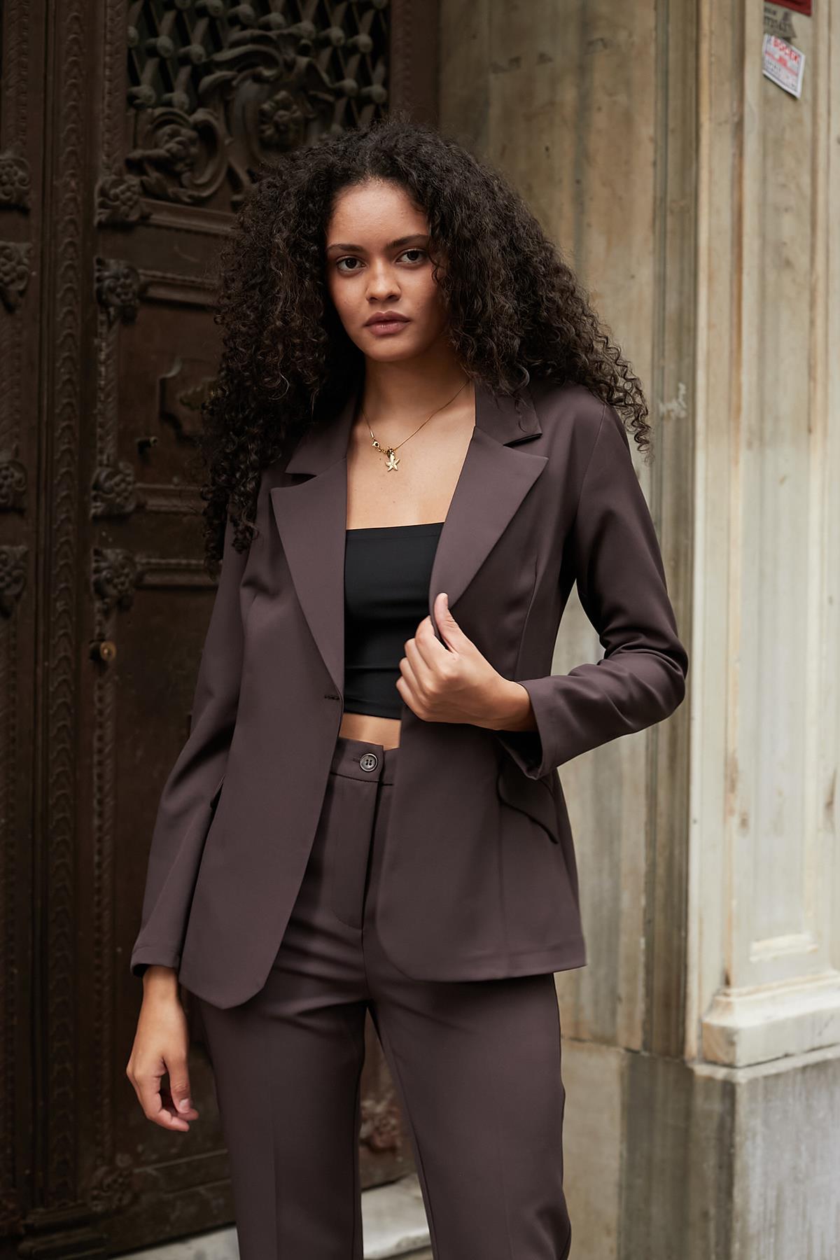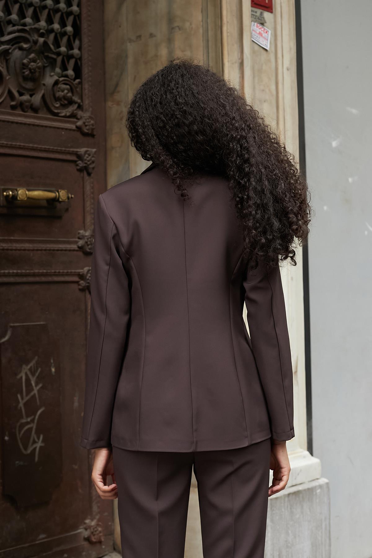 kadın yakalı cep kapaklı uzun kol ceket (39008)
