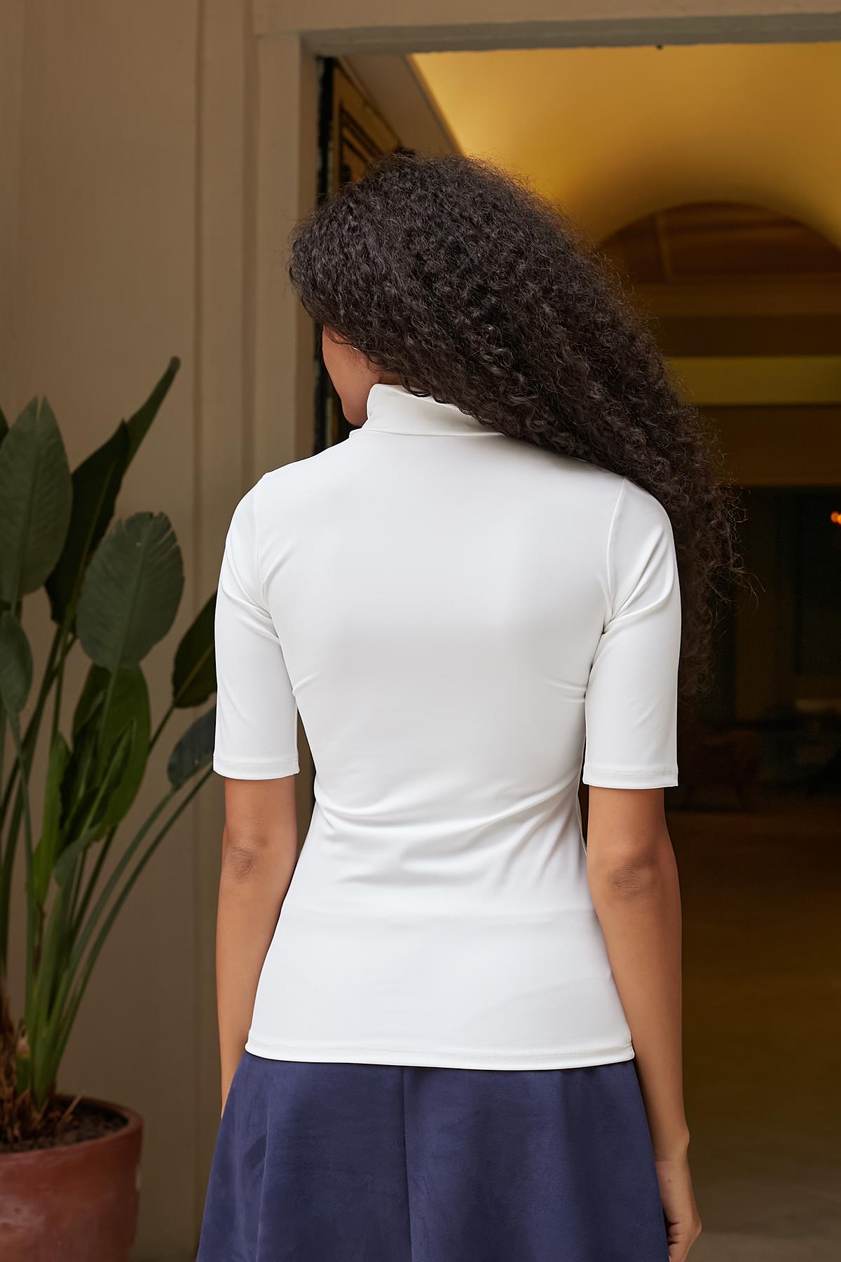 kadın yarım balıkçı önü dekolteli dirsek üstü kol bluz (20560)