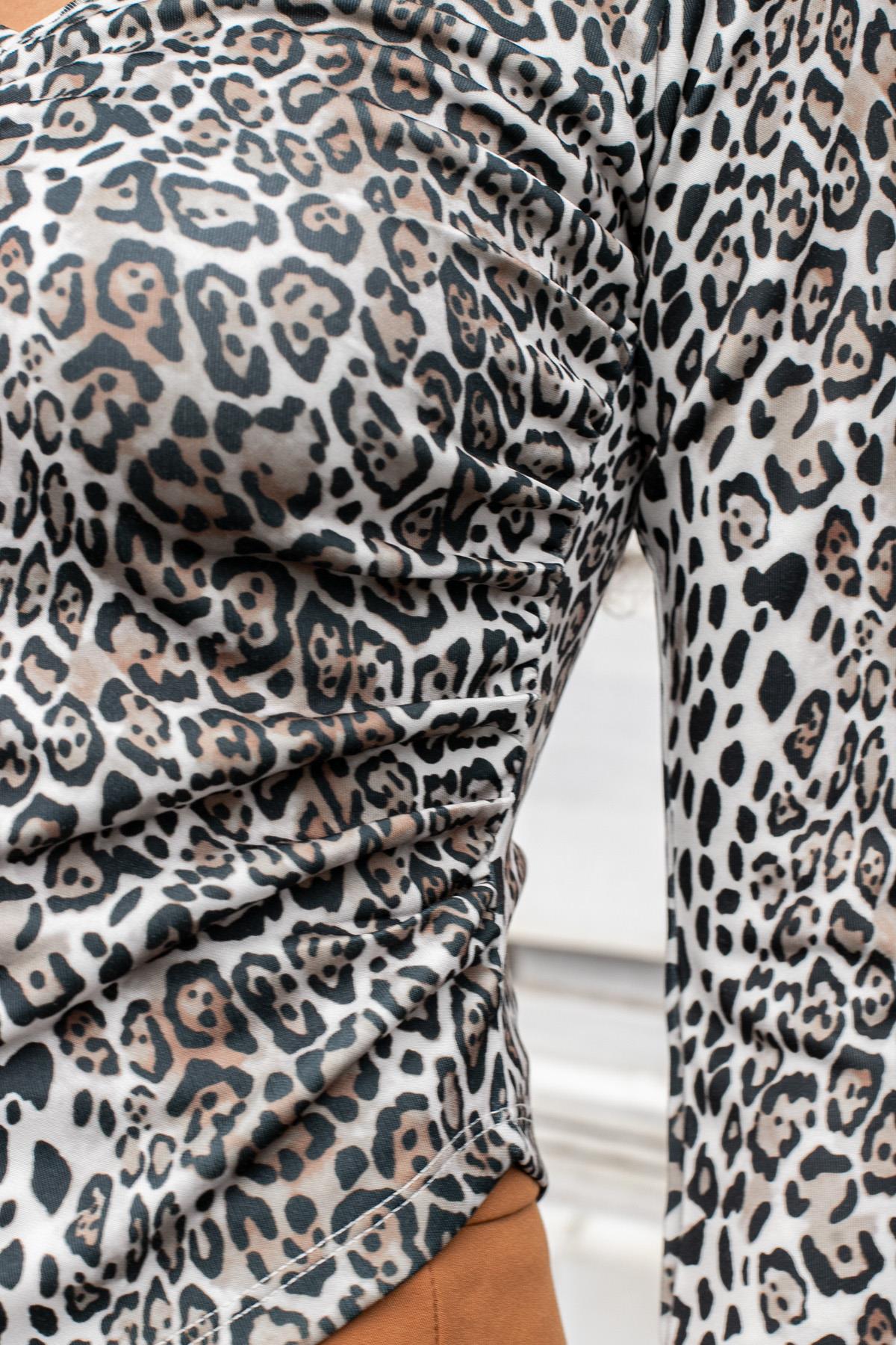 kadın desenli v yaka büzgülü uzun kol asimetrik bluz (20556)