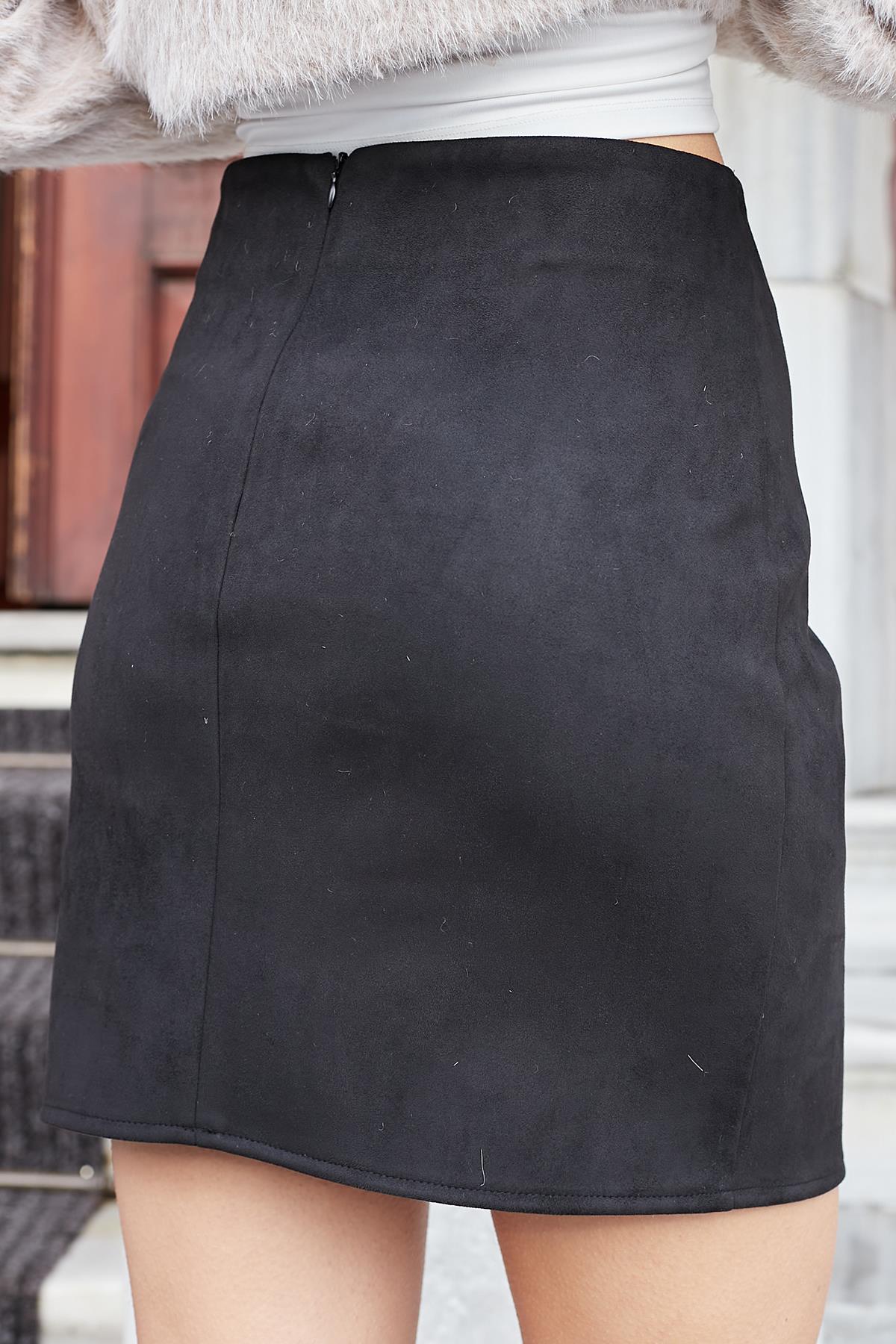 kadın süet likralı hafif mini fermuarlı kalem etek (100152)