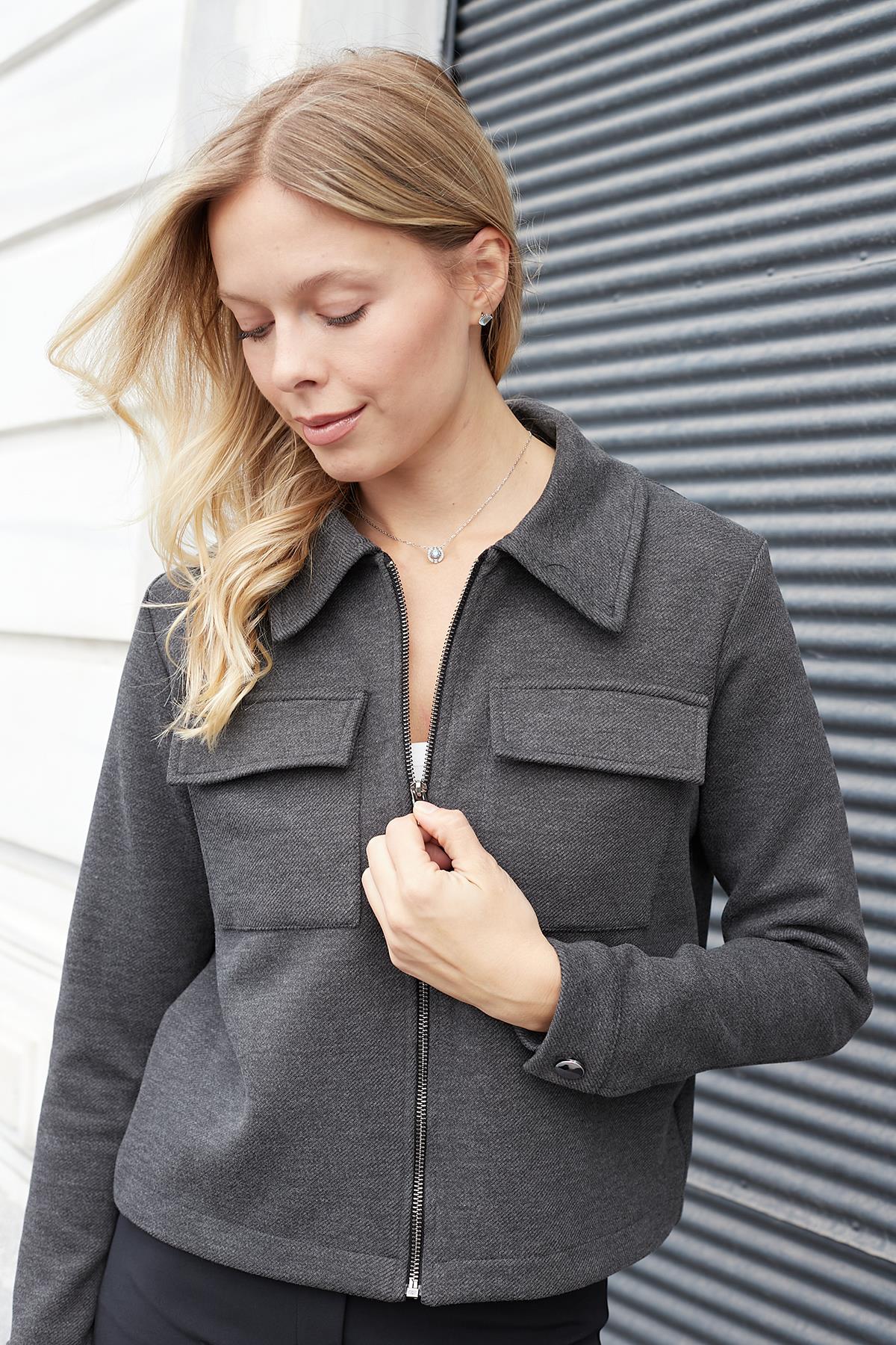 kadın yakalı cep kapaklı fermuarlı uzun kol kısa mont
