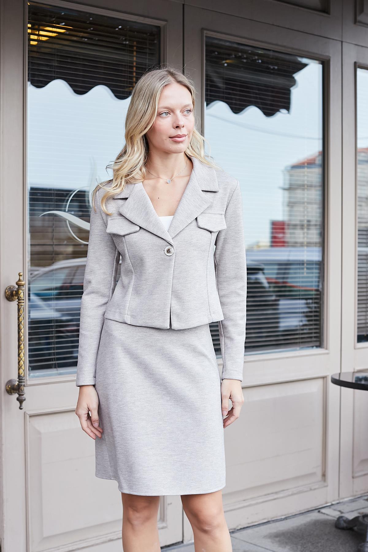 Kadın Kalın Esnek Kumaş Yüksek Bel Diz Üstü Çan Etek-Antrasit Kadın Kalın Esnek Kumaş Yüksek Bel Diz Üstü Çan Etek-Krem