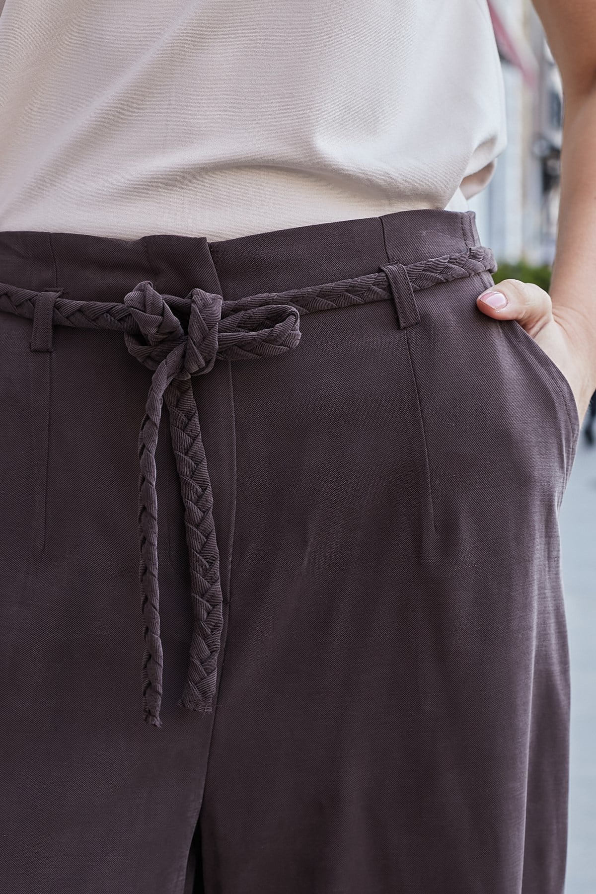 Kadın Modal Diyagonal Kumaş Yüksek Bel Yan Cepli Kemerli Bol Paça Palazzo Pantolon-Kahve (40116)