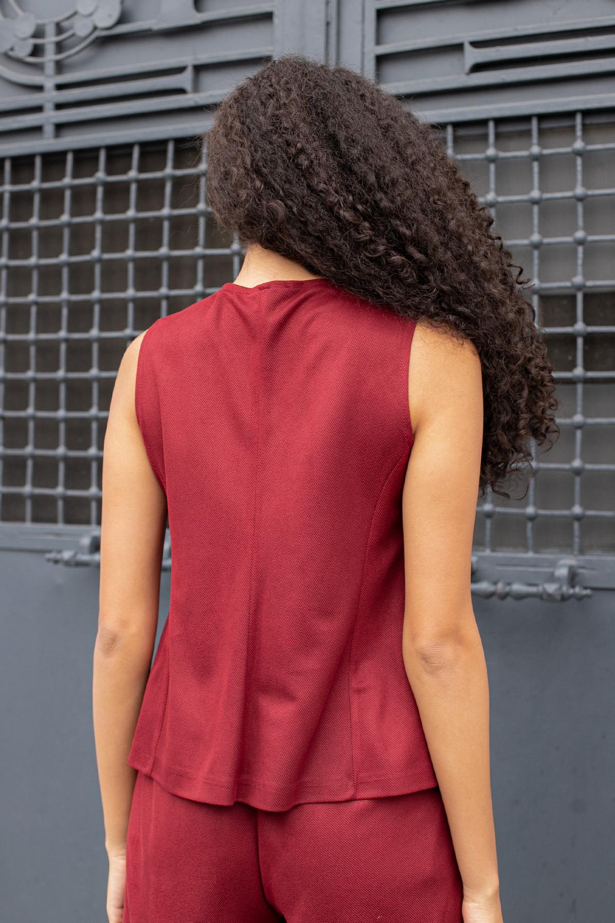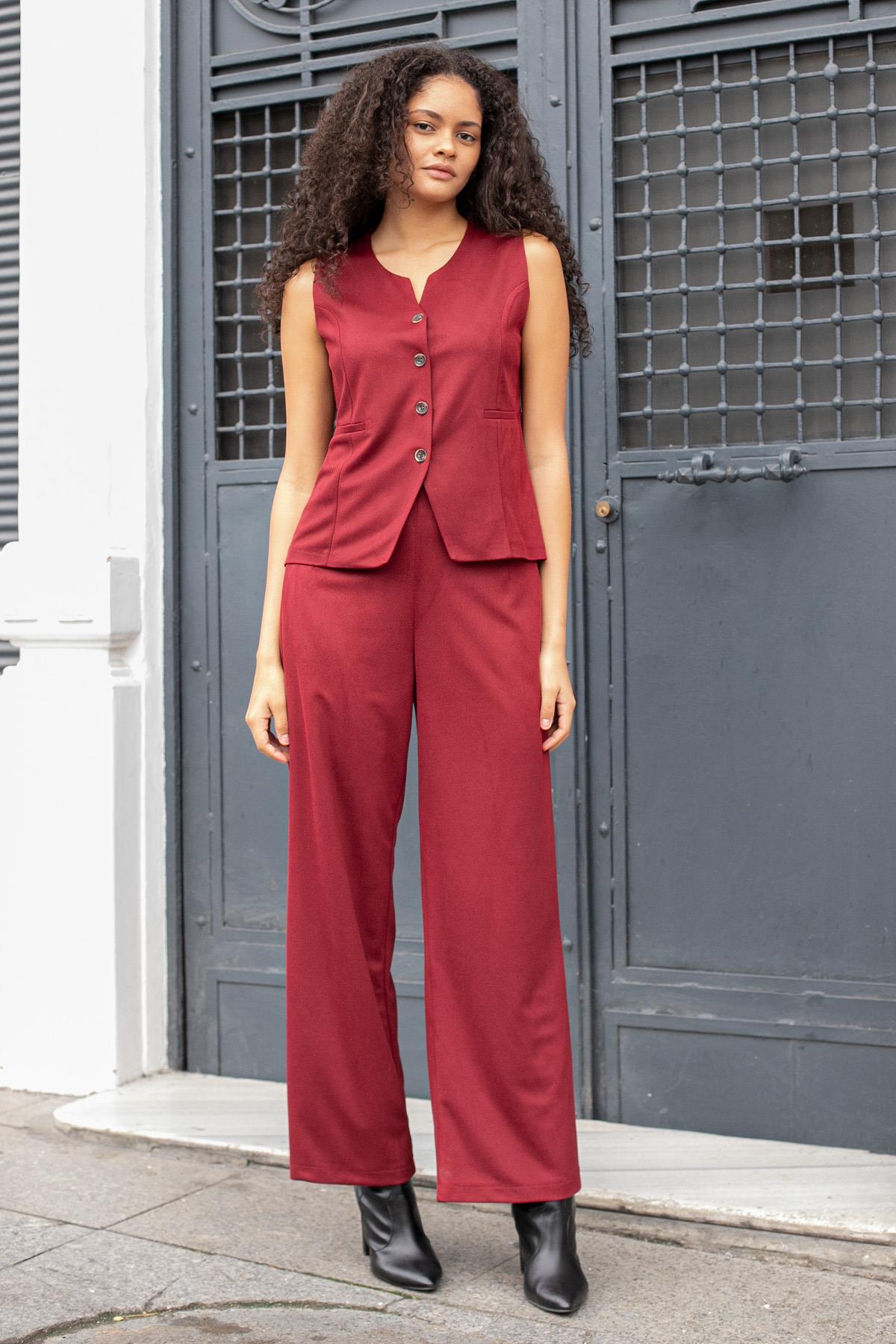 Kadın Süet Dokulu Kumaş Geniş Sıfır Yakalı Flato Cepli Yelek-Bordo (65030)