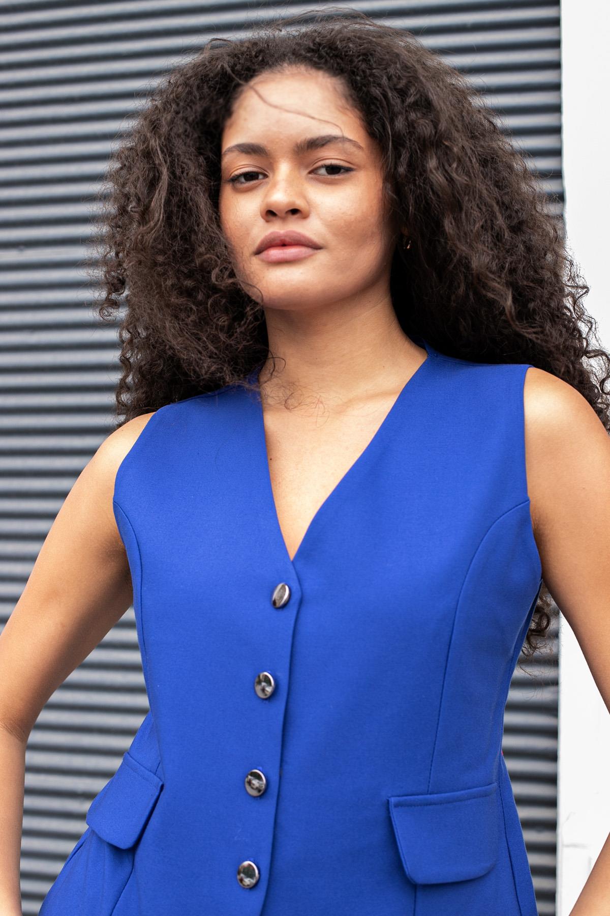 Kadın V Yaka Cep Kapaklı Düğmeli Hafif Esnek Kumaş Yelek-İndigo (65027)
