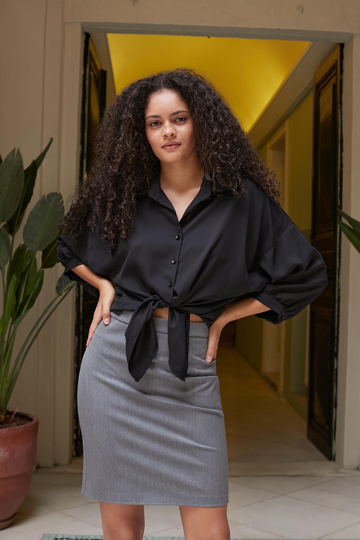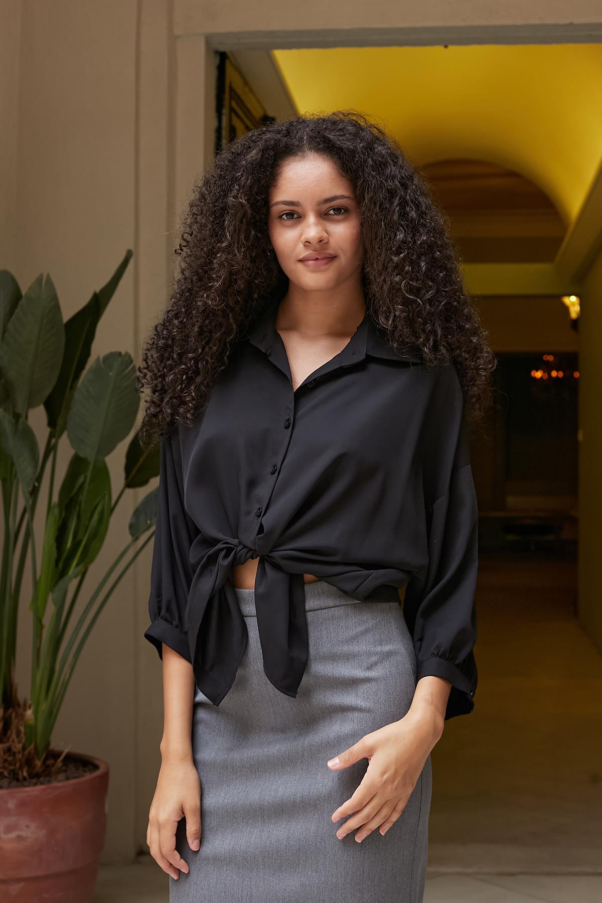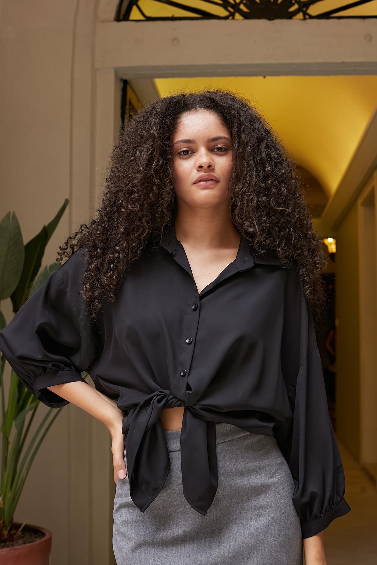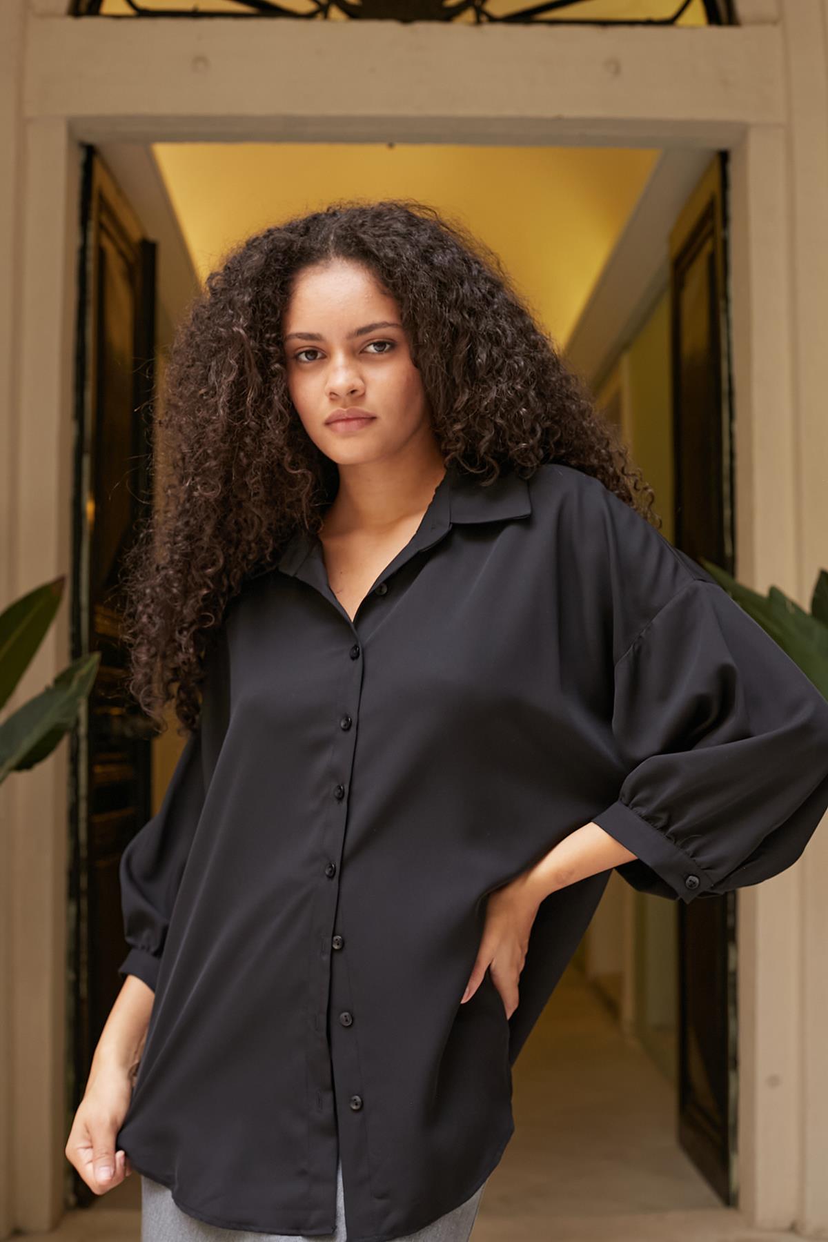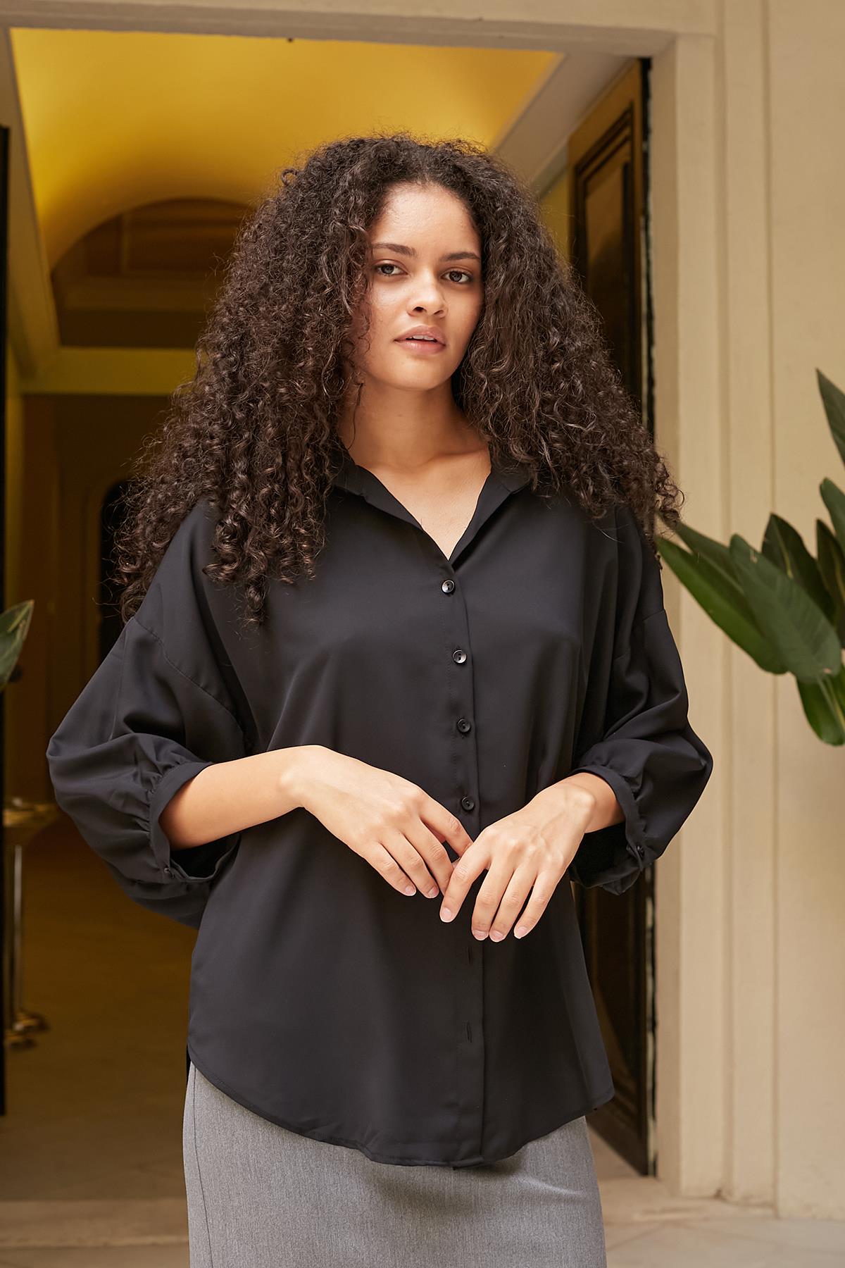 Kadın Yakalı Düşük Omuzlu Salaş Gömlek-Siyah (90066)