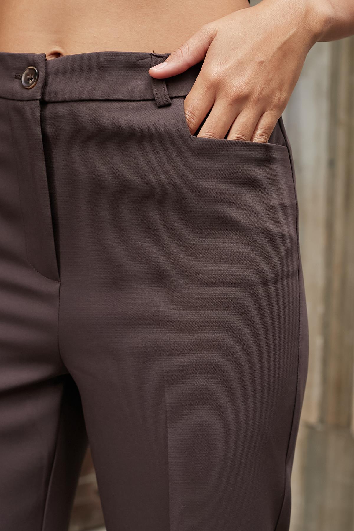Kadın Yüksek Bel Alman Cepli Boru Paça Bacak Kısmı Rahat Hafif Esnek Kumaş Pantolon-Kahve (49056)