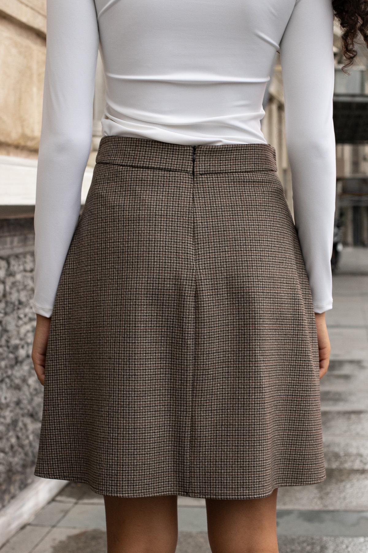 Yüksek Bel Hafif Likralı Kumaş Diz Boy Çan Etek-Vizon Kazayağı (100073)